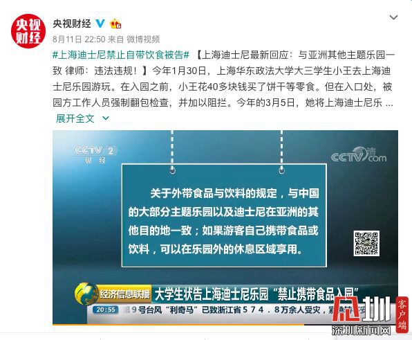 張玲說法|上海迪士尼禁止游客自帶食物被大學(xué)生告了 中消協(xié)發(fā)話