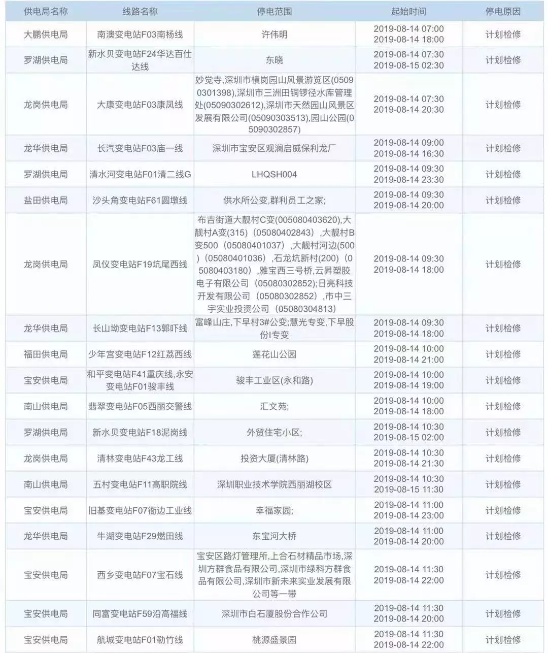 據(jù)中國(guó)南方電網(wǎng)信息,接下來這幾天深圳這些地方計(jì)劃停電,快看看有沒有你們家。