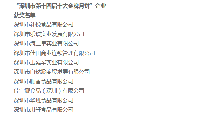 “深圳十大金牌月餅”企業(yè)在這里