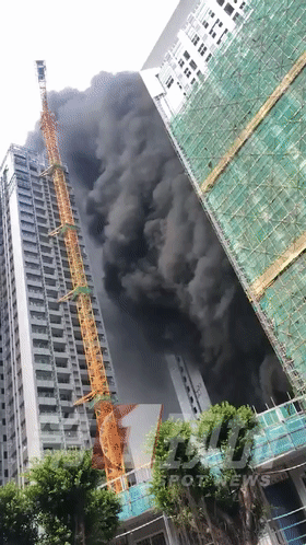 目擊市民表示,在布吉德興花園西側(cè)的一個(gè)在建樓盤(pán)工地里,疑似發(fā)生火情?,F(xiàn)場(chǎng)冒出大量黑煙,升起的高度超過(guò)了一旁三十多層高的樓盤(pán)。