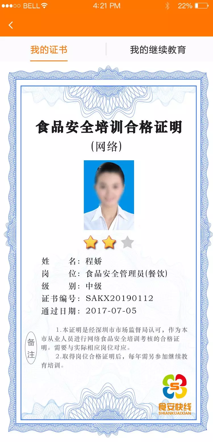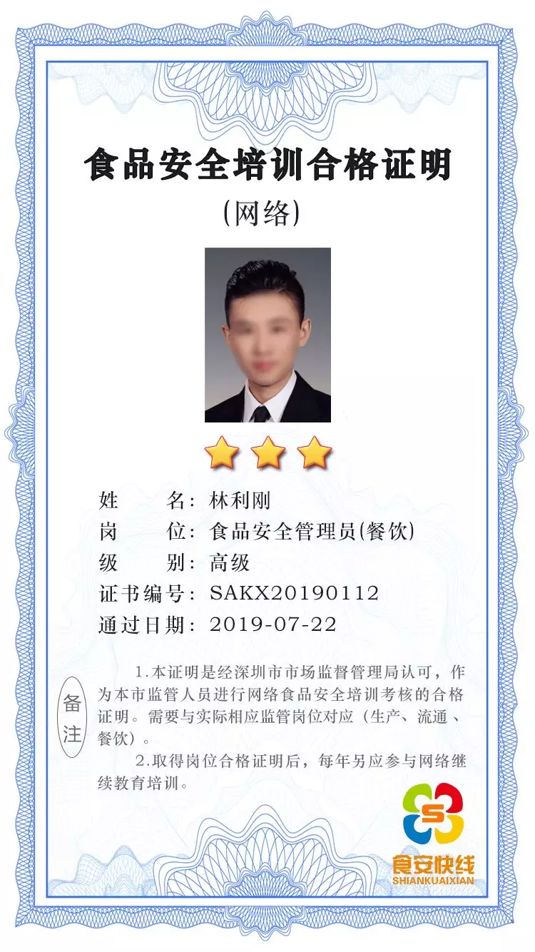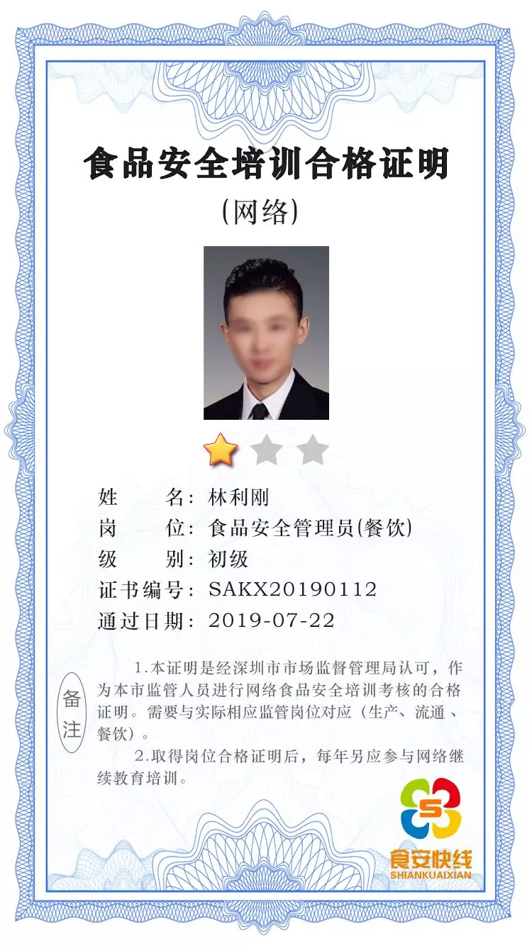 每個(gè)崗位考題滿(mǎn)分100分,可以重復(fù)考試,以最高分為最終結(jié)果,除食品安全管理員以外的崗位,得80分者即時(shí)生成電子合格證書(shū),個(gè)人依據(jù)實(shí)際需要可以考取多項(xiàng)崗位合格證明。