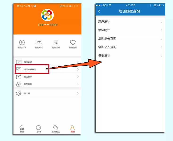 本功能僅對(duì)深圳市市場(chǎng)監(jiān)管局等簽約單位的監(jiān)管人員(須經(jīng)有效認(rèn)證后)開(kāi)放,在首頁(yè)的【我的】中打開(kāi)【培訓(xùn)數(shù)據(jù)查詢】,可查詢到各區(qū)、各街道、各單位和人員培訓(xùn)數(shù)據(jù)。