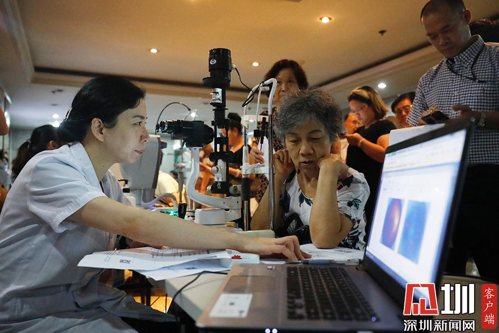 深圳市眼科醫(yī)院防盲科副主任曾琨正與來(lái)體檢的職工交流