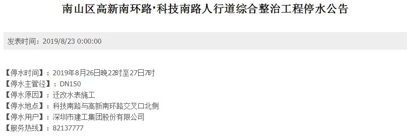 對停水公告,市民朋友如有疑問,可致電水務(wù)服務(wù)熱線82137777。