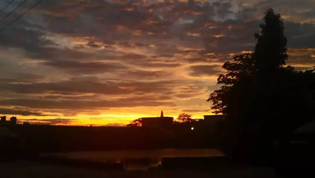 #深圳晚霞#應(yīng)該就是在氣象上所說的臺(tái)風(fēng)來臨前的“反暮光”。它一般在臺(tái)風(fēng)來襲前一兩天的日落時(shí)分出現(xiàn),西方地平線下發(fā)出數(shù)條放射狀、紅藍(lán)相間的光芒,發(fā)射到天頂,然后收斂于東方與太陽對(duì)稱的地方,映紅整個(gè)天空。