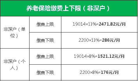 繳費(fèi)比例:深戶與非深戶職工個(gè)人繳費(fèi)比例都為8%,單位繳費(fèi)比例分別為14%(基本13%+地補(bǔ)1%)和13%(基本13%)。