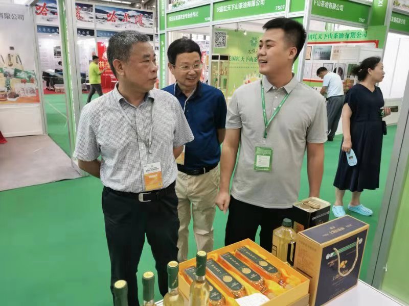 展銷(xiāo)會(huì)期間,市委常委、政法委書(shū)記陳榮高,市農(nóng)業(yè)農(nóng)村局黨組成員、副局長(zhǎng)呂文生一行特意走訪了參加本次展會(huì)的多家企業(yè)。在江西油脂有限公司的展區(qū),陳書(shū)記詳細(xì)了銷(xiāo)售人員紅花山茶油銷(xiāo)售情況,當(dāng)?shù)弥u(mài)出不少時(shí)滿意得點(diǎn)頭稱贊,并勉勵(lì)銷(xiāo)售人員要以此為契機(jī),讓更多的上饒優(yōu)質(zhì)農(nóng)產(chǎn)品走進(jìn)粵港澳大灣區(qū),走向全世界。
