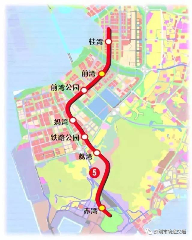 地鐵5號(hào)線南延線(即5號(hào)線二期工程),北起于5號(hào)線前海灣站,經(jīng)前海、南山,終點(diǎn)與地鐵2號(hào)線赤灣站換乘。