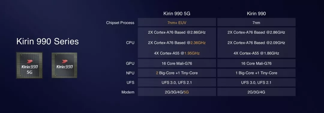不同于業(yè)界采用的4G SoC+5G Modem模式,麒麟990 5G采用業(yè)界最先進(jìn)的7nm+ EUV工藝制程,首次將5G Modem集成到SoC上,板級(jí)面積相比業(yè)界其他方案小36%,在一顆指甲大小的芯片上集成了103億晶體管,是目前晶體管數(shù)最多、功能最完整、復(fù)雜度最高的5G SoC。