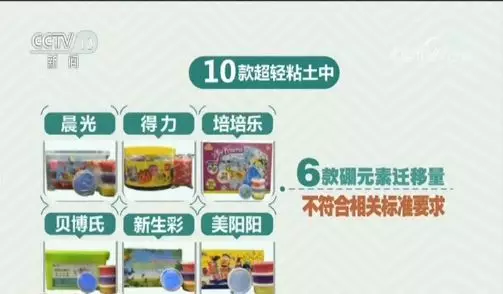 其中,10款超輕黏土中有6款硼元素遷移量被檢出不符合相關(guān)標準要求;這六款樣品分別是:標稱晨光、得力、培培樂、貝博氏、新生彩和美陽陽牌超輕黏土。