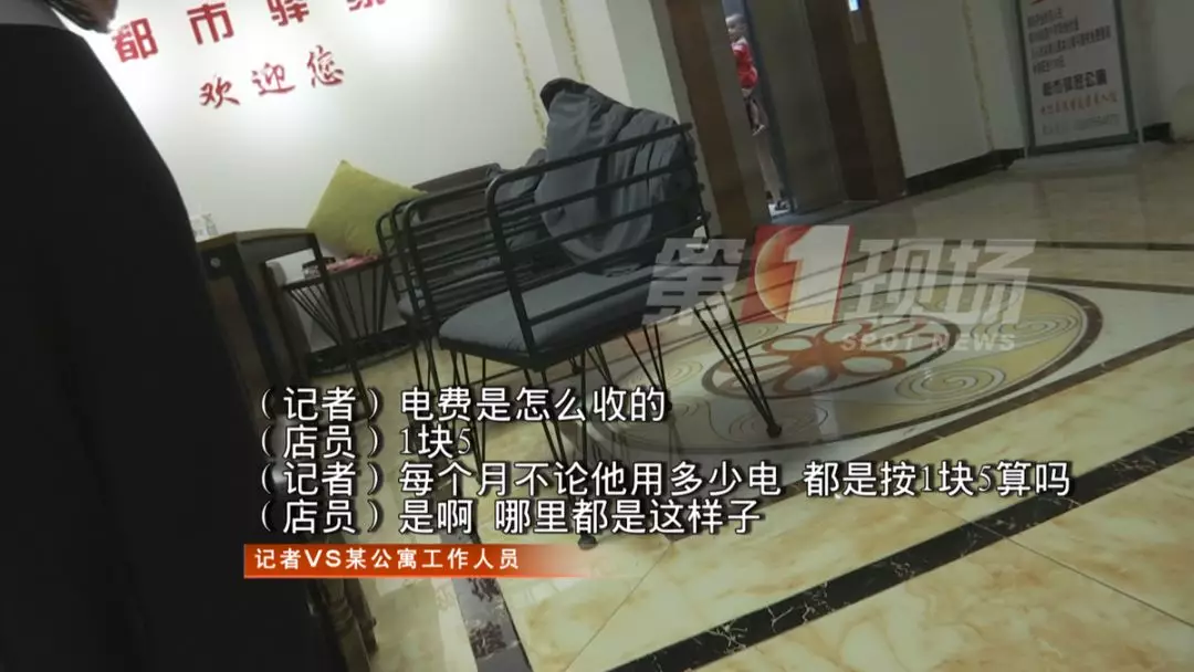 在記者走訪的另外一家改造公寓,提及電價(jià)收費(fèi)問題,門店的工作人員也很直白,他們有自己的統(tǒng)一價(jià),無論用多少度電,都是按1塊5一度電計(jì)算。
