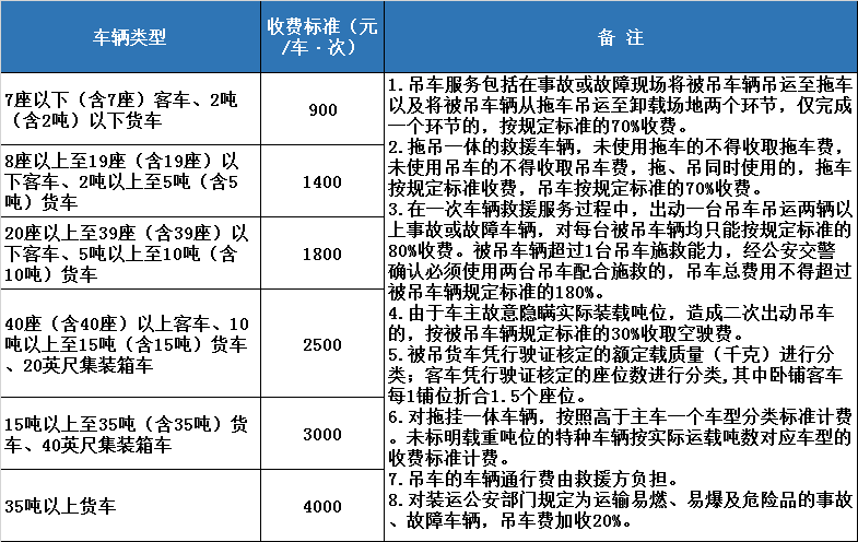 廣東省高速公路吊車服務(wù)收費標(biāo)準(zhǔn)見下表: