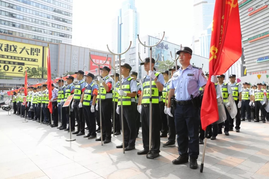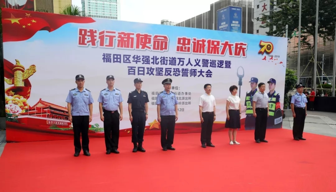 據(jù)了解,為全面推進(jìn)群防群治建設(shè),夯實(shí)基層基礎(chǔ)工作,拓寬群防群治領(lǐng)域,提升群防群治效能,筑牢社會(huì)治安防控體系,12日上午9時(shí)30分,深圳市福田區(qū)華強(qiáng)北街道萬(wàn)人義警巡邏?mèng)甙偃展?jiān)反恐誓師大會(huì)在華強(qiáng)酒店廣場(chǎng)舉行,華強(qiáng)北街道辦黨工委書(shū)記陳曉中,福田公安分局副局長(zhǎng)譚慶彬,華強(qiáng)北街道副書(shū)記楊華蘭,福田公安分局治安科科長(zhǎng)左樂(lè),華強(qiáng)北派出所副所長(zhǎng)張瓊漫、黃強(qiáng),通心嶺派出所副所長(zhǎng)劉景波等相關(guān)部門負(fù)責(zé)人參加儀式并發(fā)表講話。本次大會(huì)的舉行,意味著福田義警隊(duì)伍再添中堅(jiān)力量。