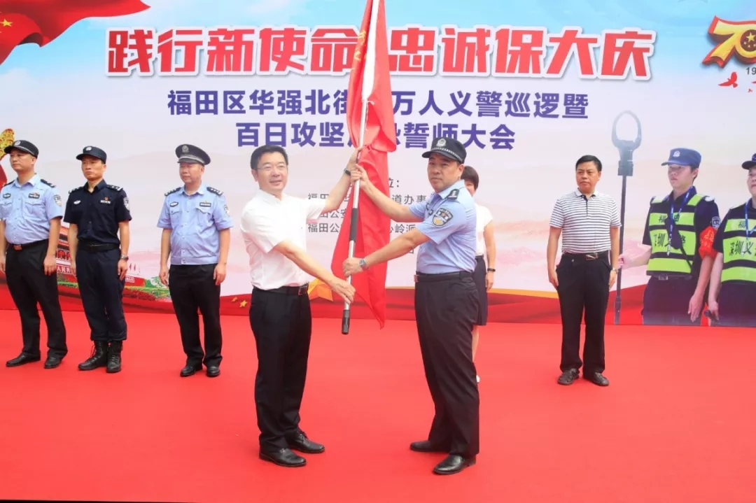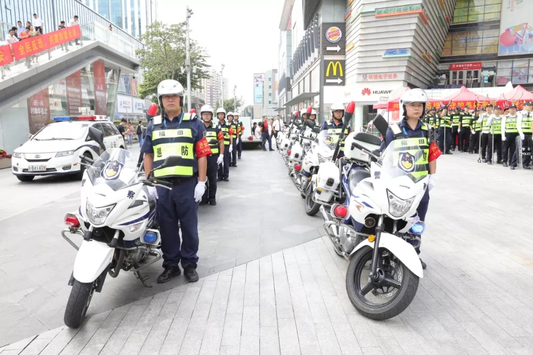 據(jù)了解,為全面推進(jìn)群防群治建設(shè),夯實(shí)基層基礎(chǔ)工作,拓寬群防群治領(lǐng)域,提升群防群治效能,筑牢社會(huì)治安防控體系,12日上午9時(shí)30分,深圳市福田區(qū)華強(qiáng)北街道萬(wàn)人義警巡邏?mèng)甙偃展?jiān)反恐誓師大會(huì)在華強(qiáng)酒店廣場(chǎng)舉行,華強(qiáng)北街道辦黨工委書(shū)記陳曉中,福田公安分局副局長(zhǎng)譚慶彬,華強(qiáng)北街道副書(shū)記楊華蘭,福田公安分局治安科科長(zhǎng)左樂(lè),華強(qiáng)北派出所副所長(zhǎng)張瓊漫、黃強(qiáng),通心嶺派出所副所長(zhǎng)劉景波等相關(guān)部門(mén)負(fù)責(zé)人參加儀式并發(fā)表講話。本次大會(huì)的舉行,意味著福田義警隊(duì)伍再添中堅(jiān)力量。