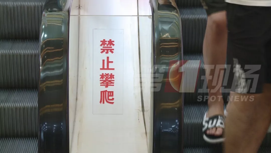 記者看到,這家商場已經在手扶電梯處,設置了一些“禁止攀爬”,“小孩必須拉住”的安全警示標志。