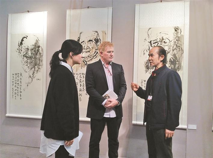 ▲2015,在“2015洛杉磯藝術(shù)博覽會(huì)”的中國(guó)國(guó)家展現(xiàn)場(chǎng),莊玉君與觀(guān)展者交流。
