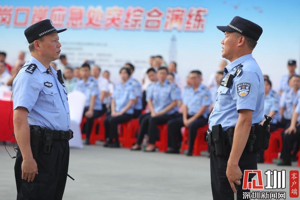福田區(qū)委副書記黃曉鵬,福田區(qū)委常委、人民武裝部部長李惟海,福田區(qū)人民政府副區(qū)長、市公安局福田分局局長、黨委書記江峰,深圳海關(guān)黨組成員、皇崗海關(guān)關(guān)長王味冰,深圳邊檢總站黨委委員、副總站長、皇崗邊檢站站長陳宏軍,深圳市反恐辦、深圳市口岸辦、以及各參演單位領(lǐng)導(dǎo)現(xiàn)場檢閱觀摩了本場演練。