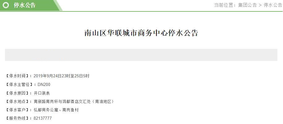 9月23-24日,福田南山羅湖多片區(qū)將停水,這些小區(qū)受影響