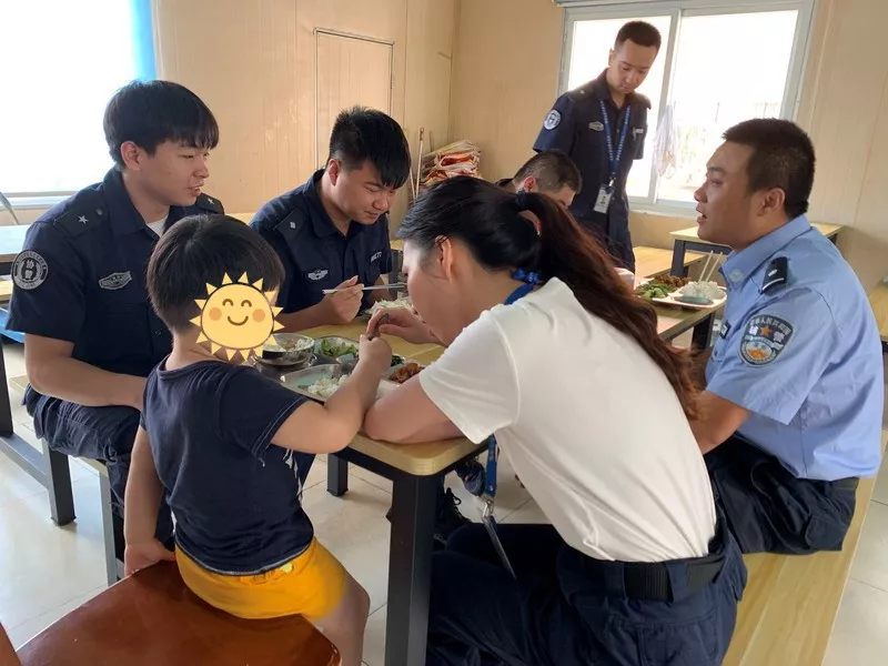 正值午飯時(shí)分,小男孩說餓了,想吃肉。郭飛教導(dǎo)員立即到飯?zhí)媒淮鷰煾堤酎c(diǎn)嫩的青菜,做點(diǎn)軟一些的肉給小男孩吃。并安排輔警王野、輔助人員黃以敏等人繼續(xù)陪同就餐和安撫。