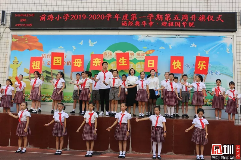 見圳客戶端、深圳新聞網(wǎng)2019年9月30日訊(見圳客戶端、深圳新聞網(wǎng)記者 陳彬 通訊員 羅其潔 潘志高)為慶祝中華人民共和國成立70周年,加強(qiáng)愛國主義教育,踐行社會(huì)主義核心價(jià)值觀,前海小學(xué)通過舉行愛國教育三部曲,祝愿偉大的祖國繁榮昌盛。