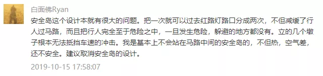 安全島絕對安全么,顯然不是。事實上,設(shè)置安全島的初衷是為了提升行人過街效率和道路利用率,它是適應(yīng)越來越寬的城市道路,在行人與車之間尋求通行效率最大化的產(chǎn)物。以10月15日的車禍為例,面對動能巨大的奔馳越野車,哪怕是修一堵高墻恐怕也難阻擋。因此,所謂安全島,只能做到相對安全,而非不可逾越的屏障。