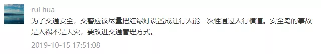 安全島絕對安全么,顯然不是。事實上,設(shè)置安全島的初衷是為了提升行人過街效率和道路利用率,它是適應(yīng)越來越寬的城市道路,在行人與車之間尋求通行效率最大化的產(chǎn)物。以10月15日的車禍為例,面對動能巨大的奔馳越野車,哪怕是修一堵高墻恐怕也難阻擋。因此,所謂安全島,只能做到相對安全,而非不可逾越的屏障。