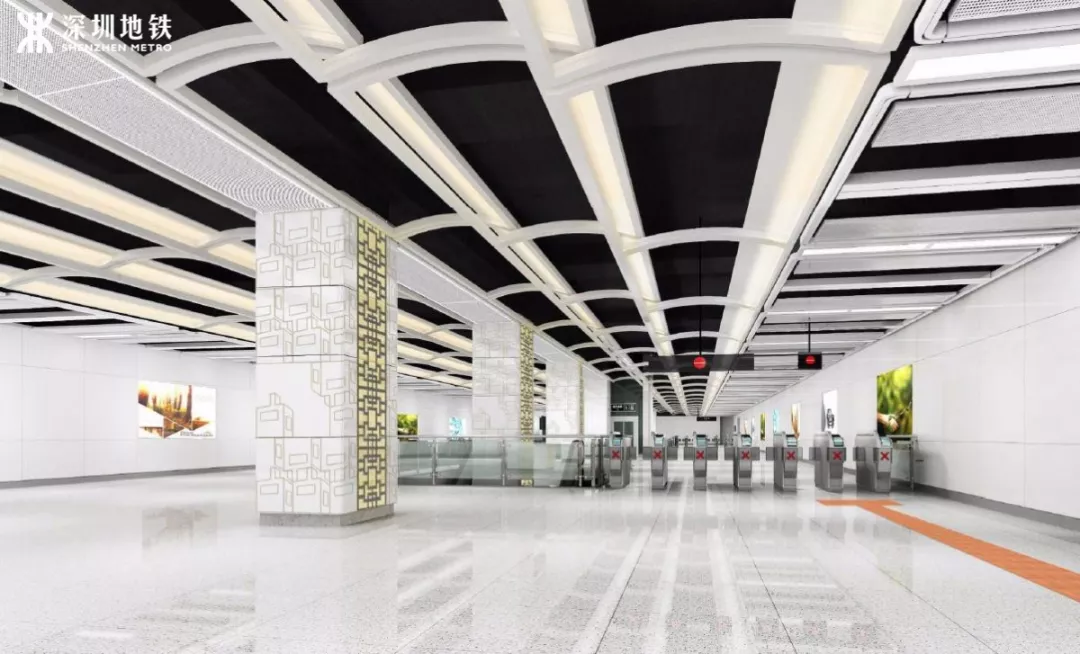 原9號線一期線路的裝修設(shè)計(jì)主題為“宜居生活”,體現(xiàn)的是深圳宜居生態(tài),綠色生活的概念,設(shè)計(jì)元素選取的是深圳嶺南及客家文化。