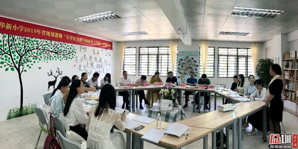 深圳市教育科學(xué)研究院副院長、研究員潘希武博士后,深圳市教育科學(xué)研究院科研管理辦副教研員李賢博士,深圳市福田區(qū)教育科學(xué)研究院研究員呂慶燕博士,深圳市學(xué)生文聯(lián)秘書長、深圳市福田區(qū)教學(xué)研究員謝晨,知名詩人、中國詩歌學(xué)會會員、廣東省作家協(xié)會會員朱建業(yè),華新小學(xué)張偉校長,童詩課題主持人、華新小學(xué)課程部主任鄧麗云,以及來自深圳市南山區(qū)、福田區(qū)7所學(xué)校的課題組成員們,出席了開題活動。