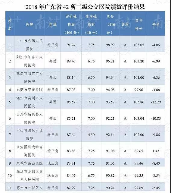 2018年廣東省42所二級公立醫(yī)院績效評價中包含深圳2家醫(yī)院,其中深圳市龍崗區(qū)第三人民醫(yī)院評級為A,深圳市坪山新區(qū)人民醫(yī)院評級為B。