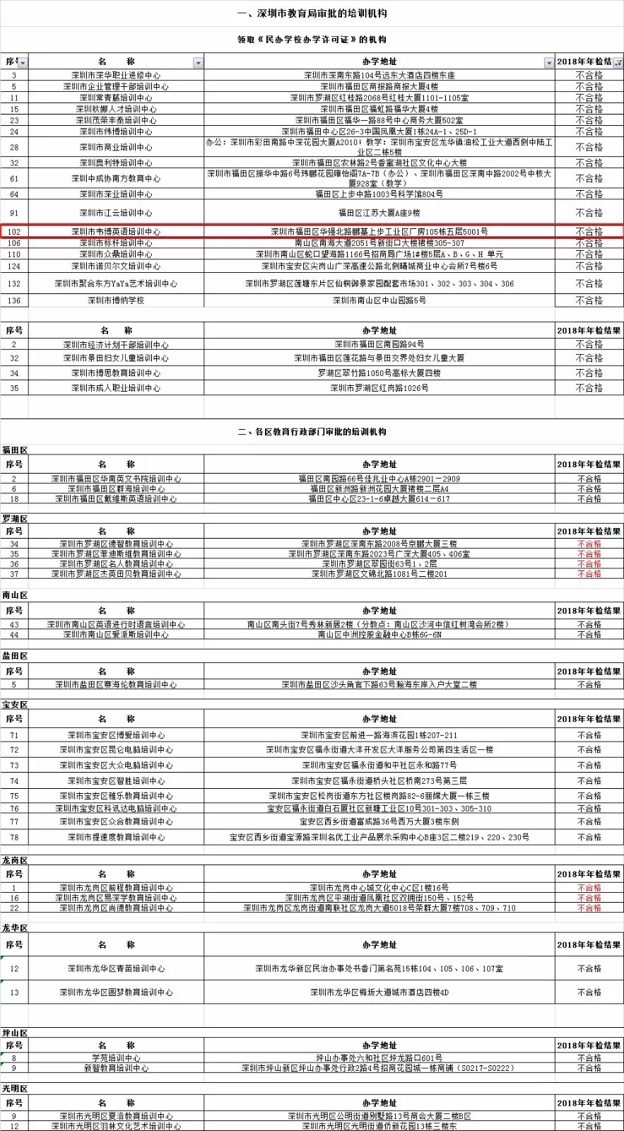 10月25日,深圳市教育局發(fā)布了《深圳市教育培訓機構(gòu)年審信息公告》,為市民選擇培訓機構(gòu)提供參考,其中有48家培訓機構(gòu)2018年年檢結(jié)果被評定為不合格,其中韋博英語的名字赫然在列。