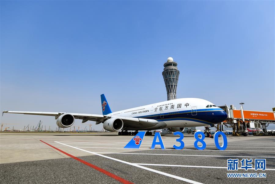 10月27日,南方航空空中客車A380客機??吭谏钲跈C場。當日下午,由全球最大寬體客機——空中客車A380執(zhí)飛的南航CZ3153次航班由深圳起飛前往北京,標志著這款“空中巨無霸”機型重返深圳機場。南航曾在2014年5月開始啟用A380執(zhí)飛京深航線,后因動態(tài)運力調配停飛。新華社記者毛思倩攝