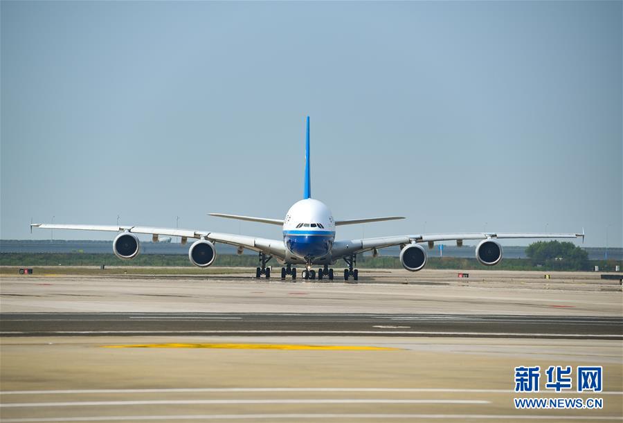 10月27日,南方航空空中客車A380客機抵達深圳機場。當(dāng)日下午,由全球最大寬體客機——空中客車A380執(zhí)飛的南航CZ3153次航班由深圳起飛前往北京,標(biāo)志著這款“空中巨無霸”機型重返深圳機場。南航曾在2014年5月開始啟用A380執(zhí)飛京深航線,后因動態(tài)運力調(diào)配停飛。新華社記者毛思倩攝