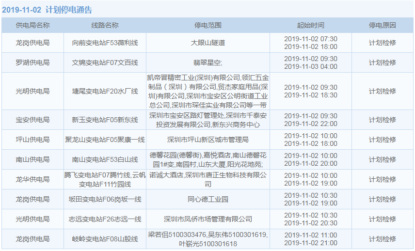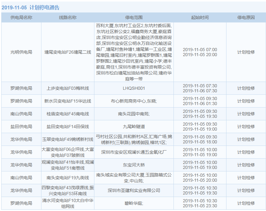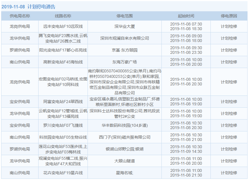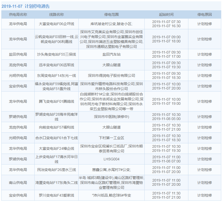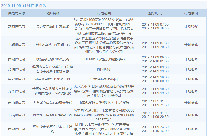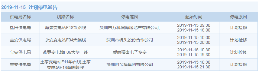 見圳客戶端·深圳新聞網(wǎng)2019年10月29日訊 據(jù)中國(guó)南方電網(wǎng)最新消息:11月1日至11月15日,深圳這些地方將停電!快來(lái)看看有沒有你家的吧。