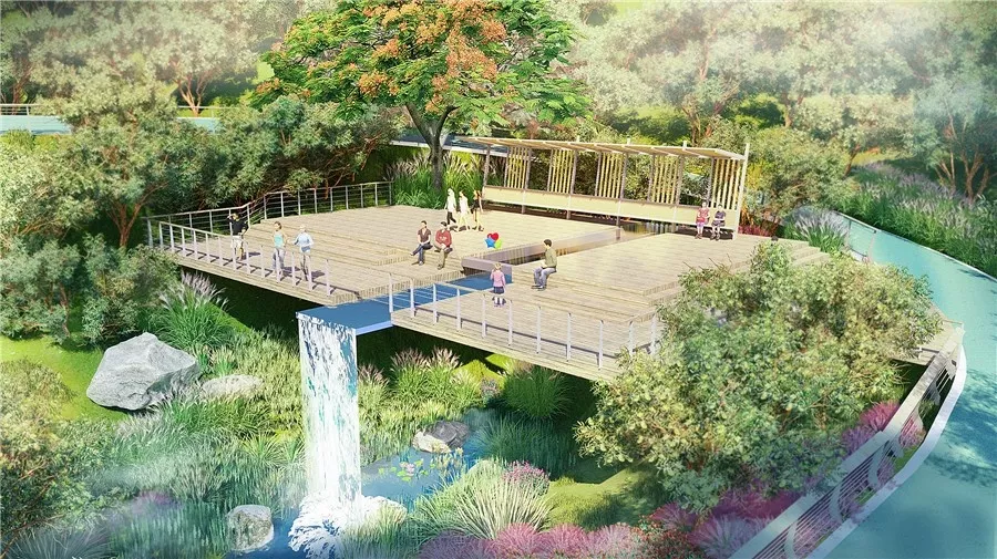 天然的溪谷,沿線配上蝴蝶花、天堂鳥(niǎo)、鳶尾等寓意幸福的開(kāi)花植物,營(yíng)造出一片繁花似錦、彩蝶紛飛的溫馨景觀,代表著人才在深圳奮斗的成果,也寓意著人才內(nèi)心滿(mǎn)滿(mǎn)的幸福感。