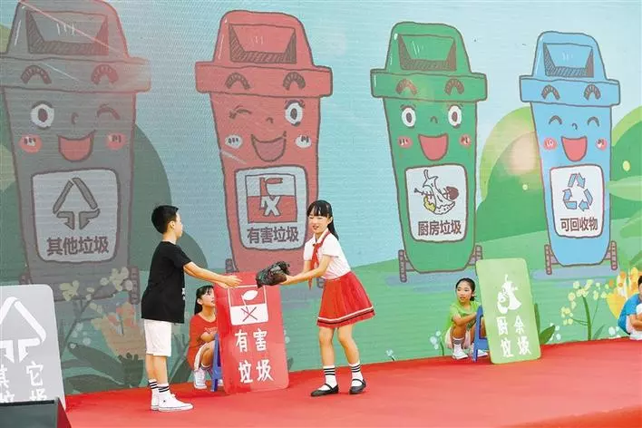 ▲今年暑假,深圳市垃圾分類“小小督導員志愿者”點火行動啟動,羅湖區(qū)東昌小學1500名學生被聘為垃圾分類“小小督導員”。深圳商報記者廖萬育攝