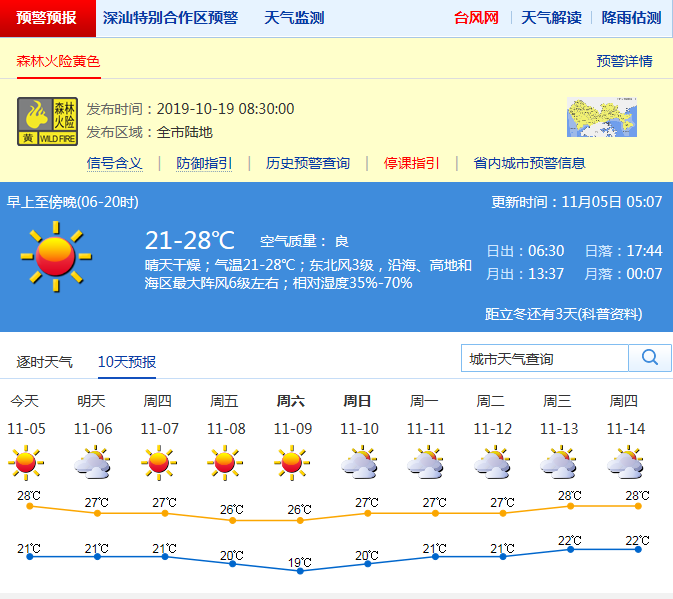 據(jù)悉,11月初的深圳天氣"晴"深意切,11月3日白天最高溫達(dá)到30℃。記者從市氣象臺(tái)獲悉,本周天氣將有所轉(zhuǎn)變,有兩股弱冷空氣將影響深圳,氣溫將有小幅波動(dòng)。