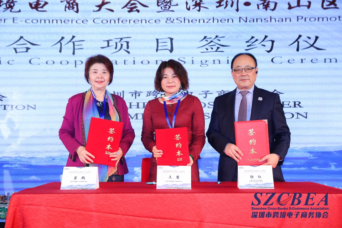 會上,深圳市健康產(chǎn)業(yè)發(fā)展促進(jìn)會會長黃鶴女士、深圳市跨境電子商務(wù)協(xié)會執(zhí)行會長王馨女士、加拿大凱克企業(yè)集團(tuán)董事長楊紅先生上臺進(jìn)行了戰(zhàn)略合作簽約儀式。