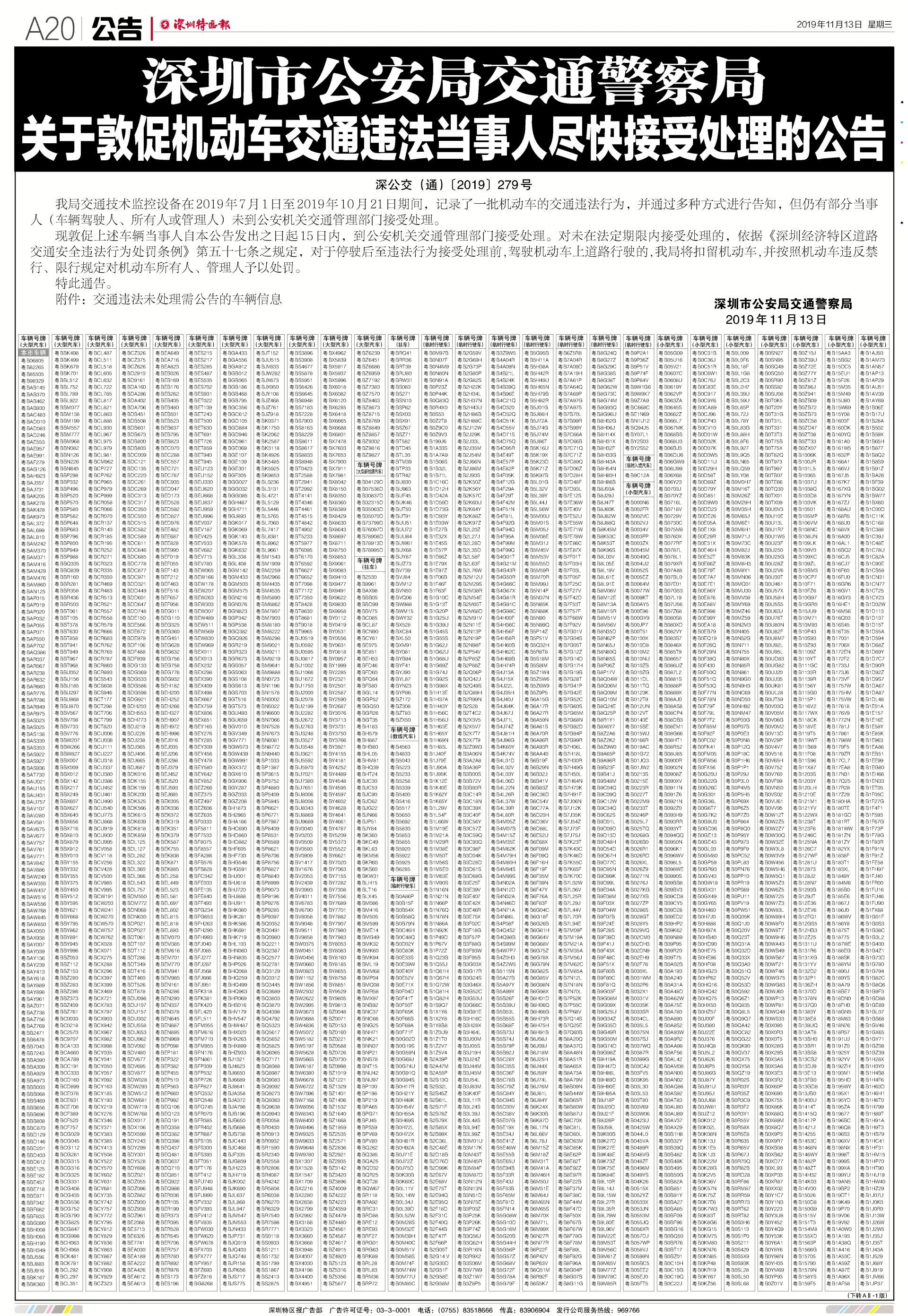 深圳交警已通過手機(jī)短信,郵寄告知等多種方式對違法車輛車主(車輛駕駛?cè)?、所有人或管理人)進(jìn)行告知送達(dá),但仍有部分車主未及時接受處理。深圳交警提醒:相關(guān)違法車輛當(dāng)事人應(yīng)盡快處理涉及的交通違法記錄。依據(jù)《深圳經(jīng)濟(jì)特區(qū)道路交通安全違法行為處罰條例》第五十一條之規(guī)定,對通知停駛后至違法行為接受處理前,駕駛機(jī)動車上道路行駛的,交警部門將扣留機(jī)動車,并按照機(jī)動車違反禁行、限行規(guī)定對機(jī)動車所有人、管理人予以處罰。