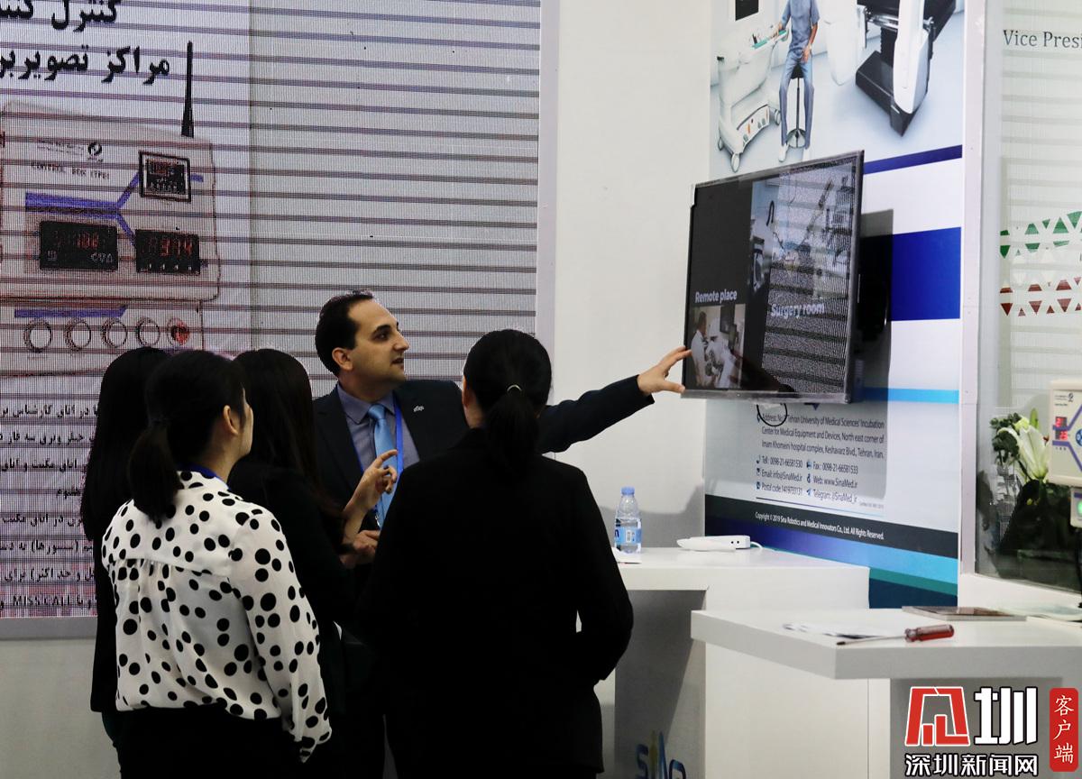 一帶一路專區(qū),一位外國參展商正在介紹產品。