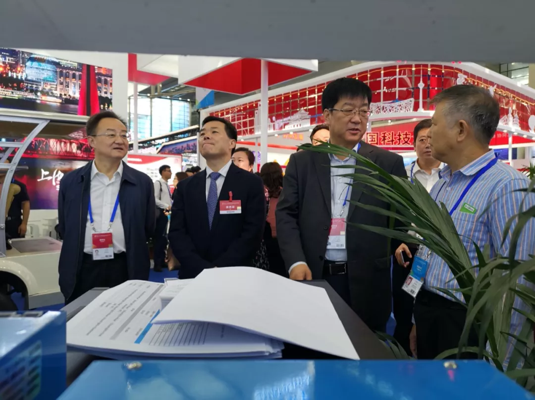 新疆維吾爾自治區(qū)政府副秘書(shū)長(zhǎng)許龍章、科技廳廳長(zhǎng)張小雷、科技廳副廳長(zhǎng)劉智敏參觀新譯展區(qū)