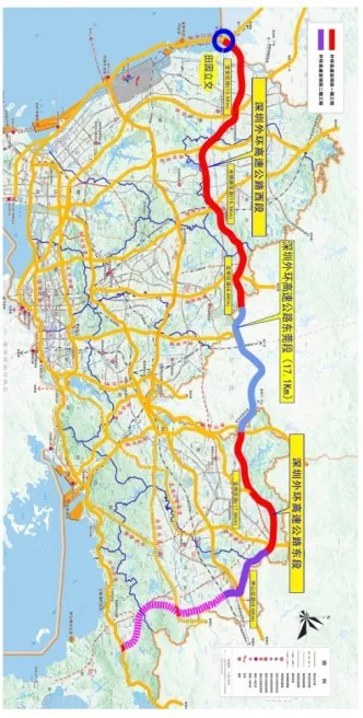 外環(huán)高速全線分為深圳段和東莞段,全長約93km(含遠(yuǎn)期規(guī)劃里程)。