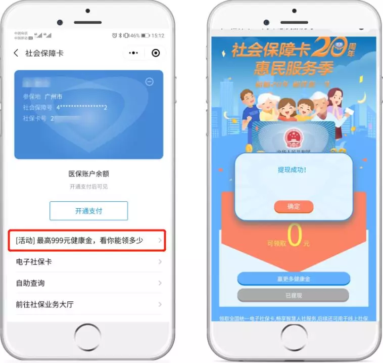 綁定電子社??ê?,可通過社??ㄔ斍轫?,回到活動首頁,點(diǎn)擊“提現(xiàn)到零錢”,馬上提現(xiàn)。