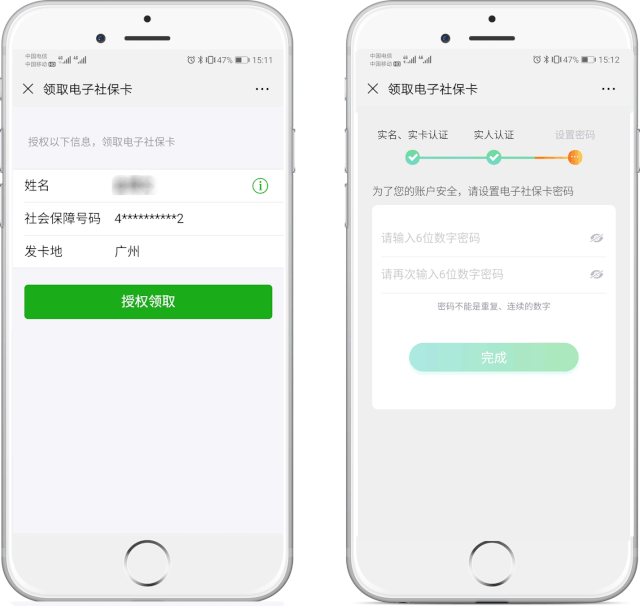 根據(jù)提示授權(quán)領(lǐng)取電子社??ǎ⑦M(jìn)行實人實名認(rèn)證后,設(shè)置電子社保卡密碼,即可完成領(lǐng)取。