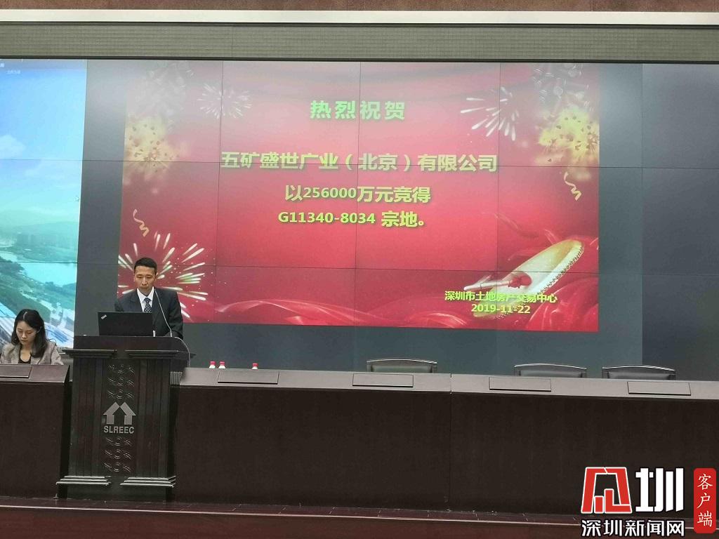 其中,坪山G11340-8034宗地,位于坪山區(qū)馬巒街道,起始價(jià)21.02億元,6家企業(yè)參與競(jìng)拍,由五礦盛業(yè)廣業(yè)(北京)有限公司出價(jià)25.6億元競(jìng)得,可售樓面價(jià)21680元/㎡,需配建11080㎡人才住房,限定普通商品住房入市最高均價(jià)為38750/平方米。