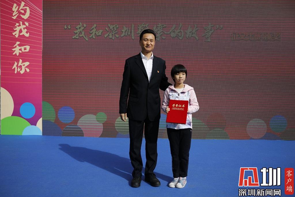 獲得“我和深圳警察的故事”征文比賽特等獎(jiǎng)的小朋友上臺領(lǐng)獎(jiǎng)。