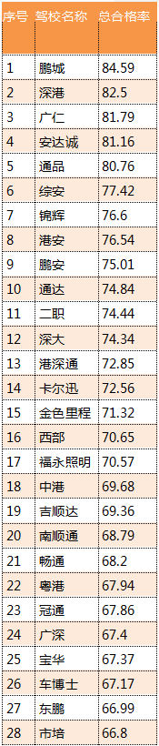 見圳客戶端·深圳新聞網(wǎng)2019年12月5日訊 12月4日,深圳市公安局交通警察局官網(wǎng)發(fā)布了2019年11月駕校質(zhì)量排行榜。記者了解到,參與考試質(zhì)量排名的駕培機(jī)構(gòu)共有38所,其中,鵬城駕校排名第一,合格率為84.59%。值得注意的是,在上個(gè)月(10月)駕??荚囐|(zhì)量排行榜中,排名第一的也是鵬城駕校。深港駕校11月總合格率為82.5%,排名第二。廣仁駕校合格率為81.79%,排名第三。全部駕校平均合格率為72.07%。