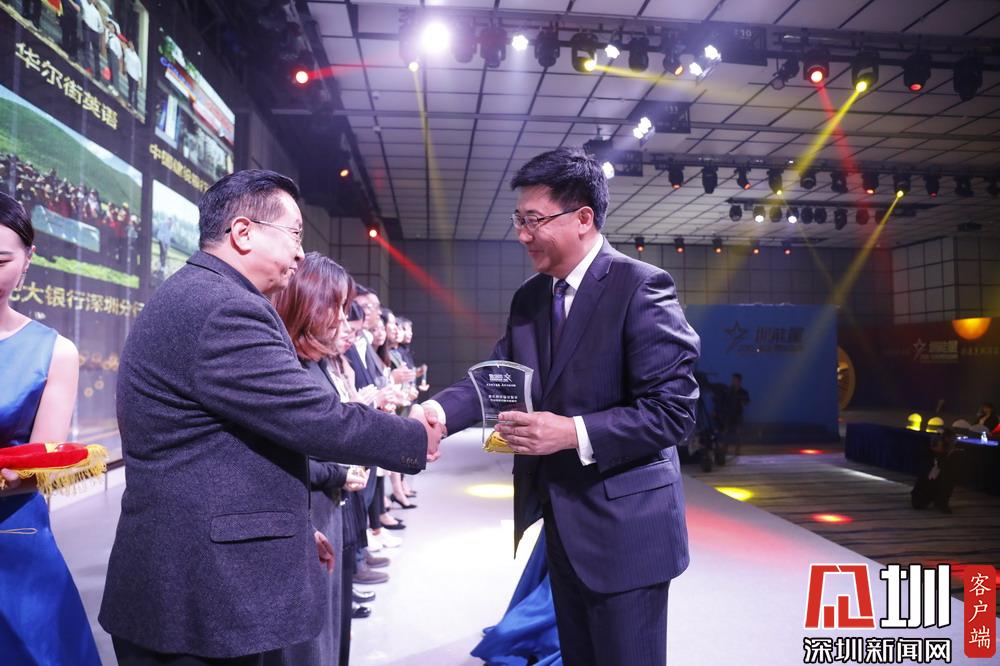 深圳報業(yè)集團社長助理、深新傳媒董事長吉書龍為榮獲“年度公益先鋒力量”的單位代表頒獎。