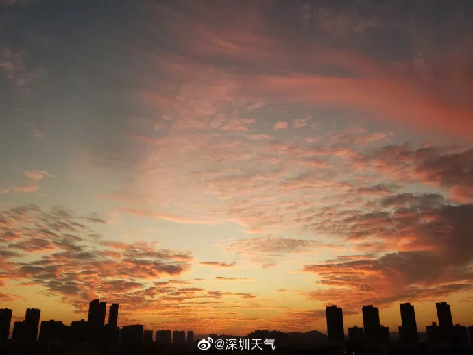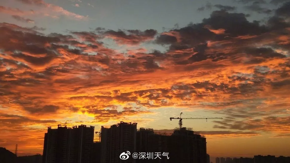昨日深圳的黃昏,染紅了每一片云朵。