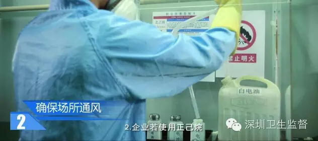 勞動者應加強防范意識,戴好防護口罩穿防護服,嚴禁用正己烷洗手。