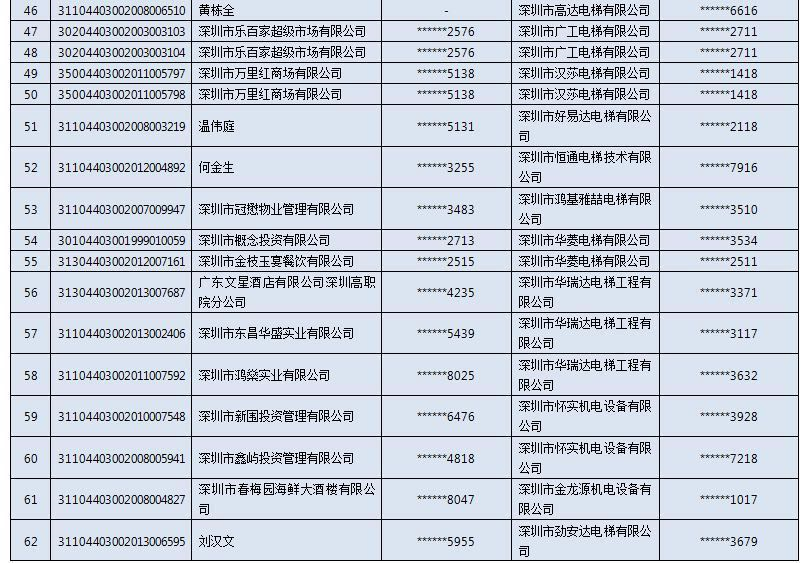 以下是電梯扶梯抽檢不合格“黑名單”